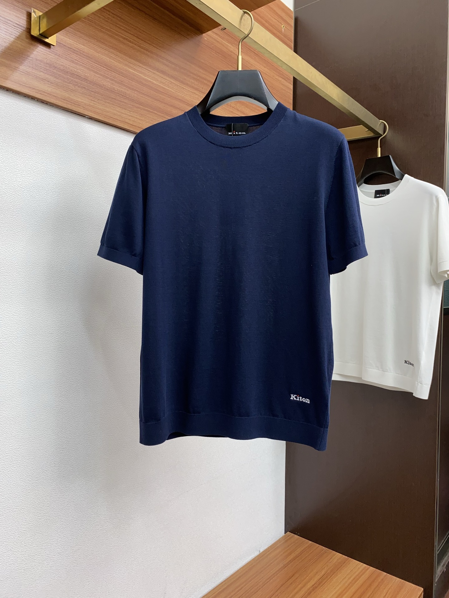 kiton 2025 New Men's round-neck knitted sweater with short sleeves Imported knitted fabrics are presented. The light and soft fabric, after being dyed in ready-to-wear garments, creates an elegant texture. The original custom logo, imported yarn color dyeing, and custom ribbed neckline and toe design, along with the classic color-blocking ribbed design, soften the inherent sporty vibe of the clothes. Its versatile style makes it very suitable for wearing alone, and all the accessories are provided by the customer. Made from customer-provided yarn, it has the same thickness as regular beads, is cool and breathable, skin-friendly and delicate without causing sweat retention, and is extremely comfortable. This solid-color design style is elegant and fashionable overall, suitable for both casual and business use! Size: M-3xL