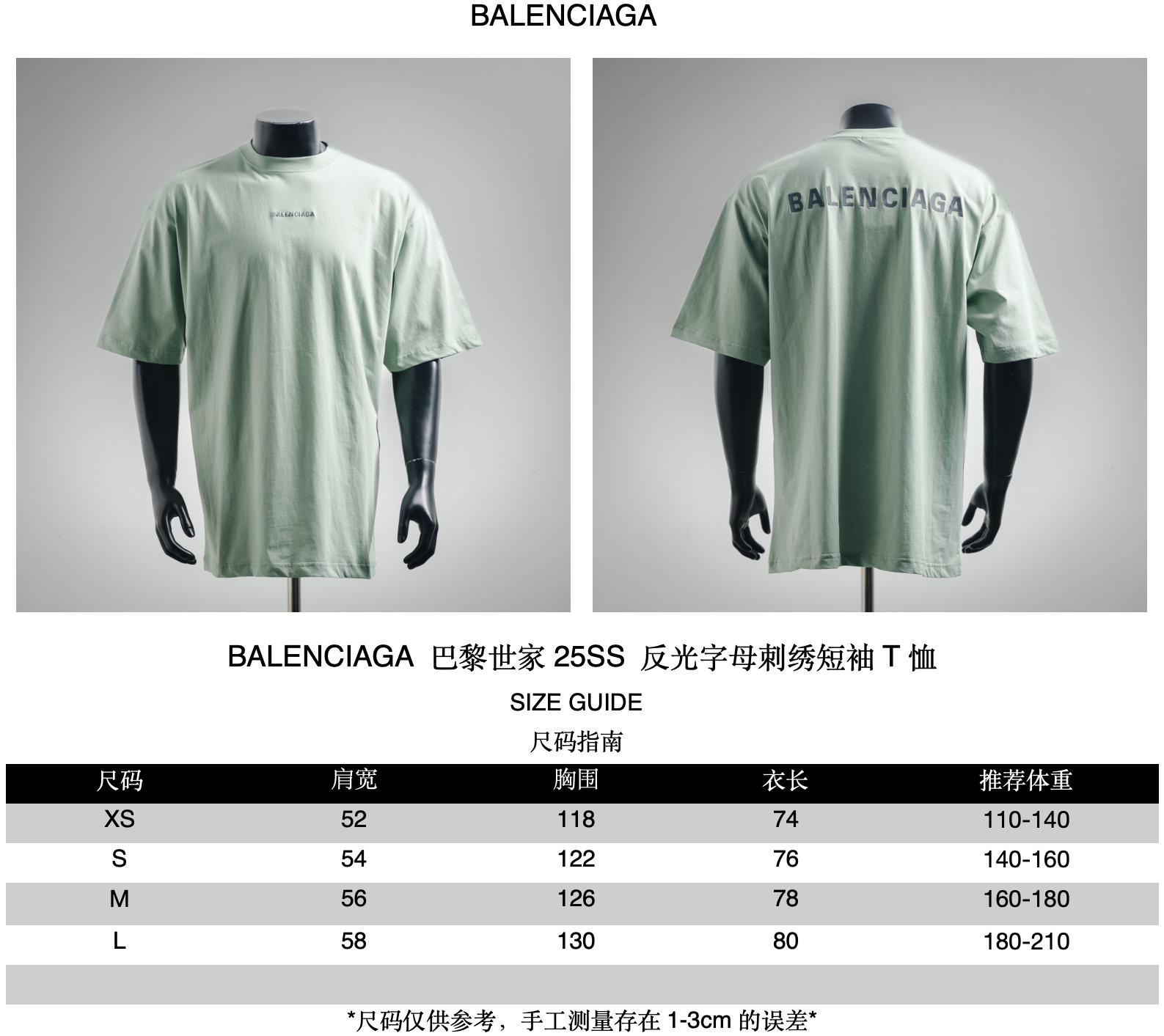 Balenciaga 25SS Reflective lettered short-sleeved T-shirt size recommendations