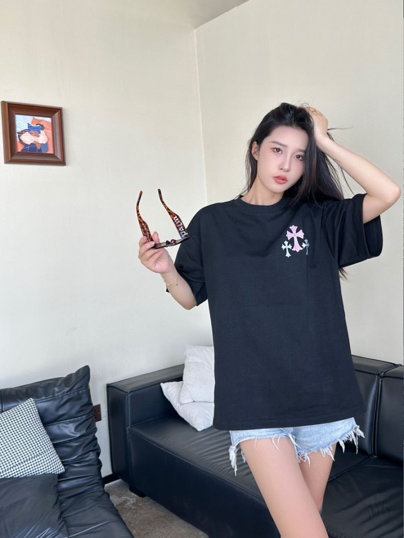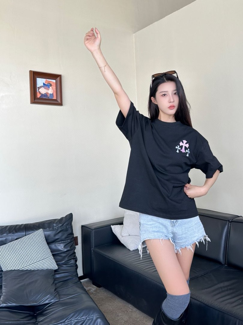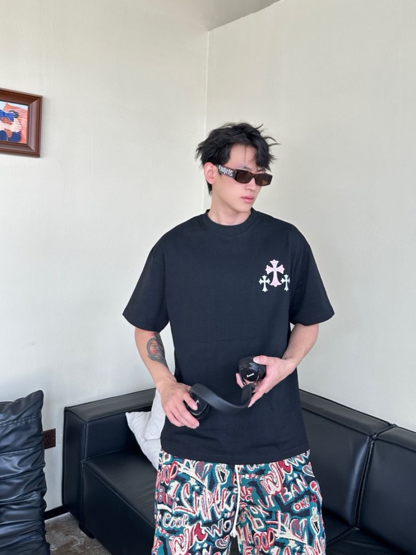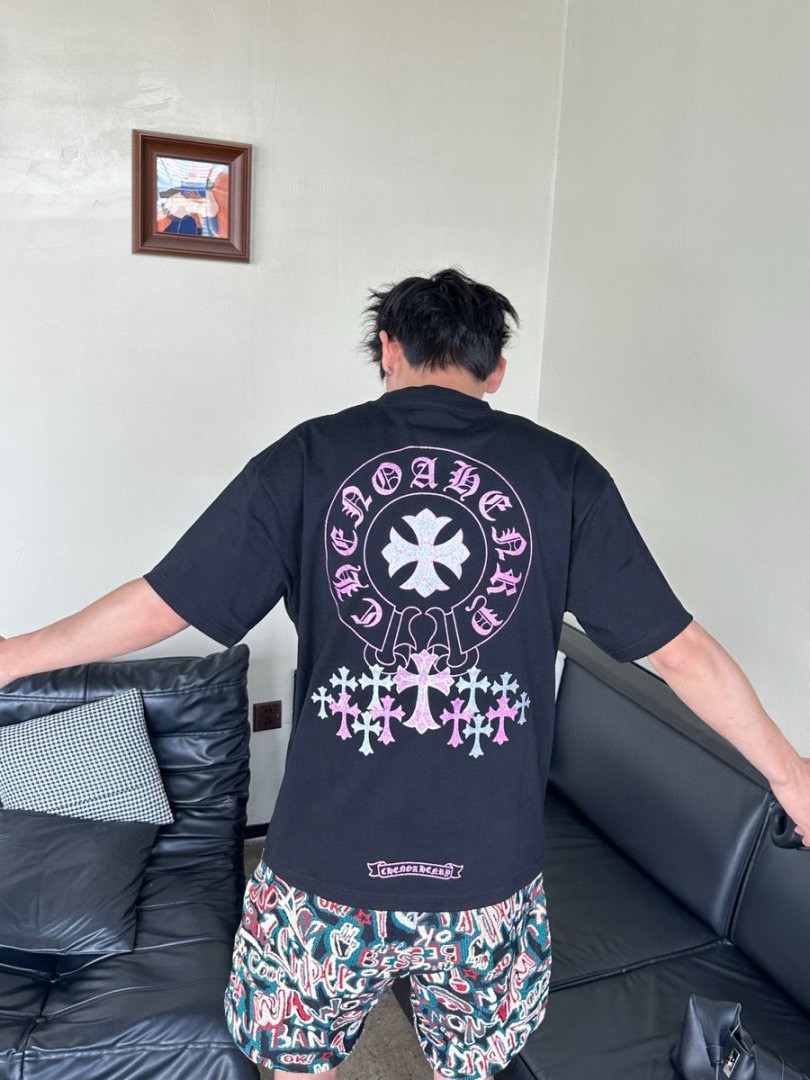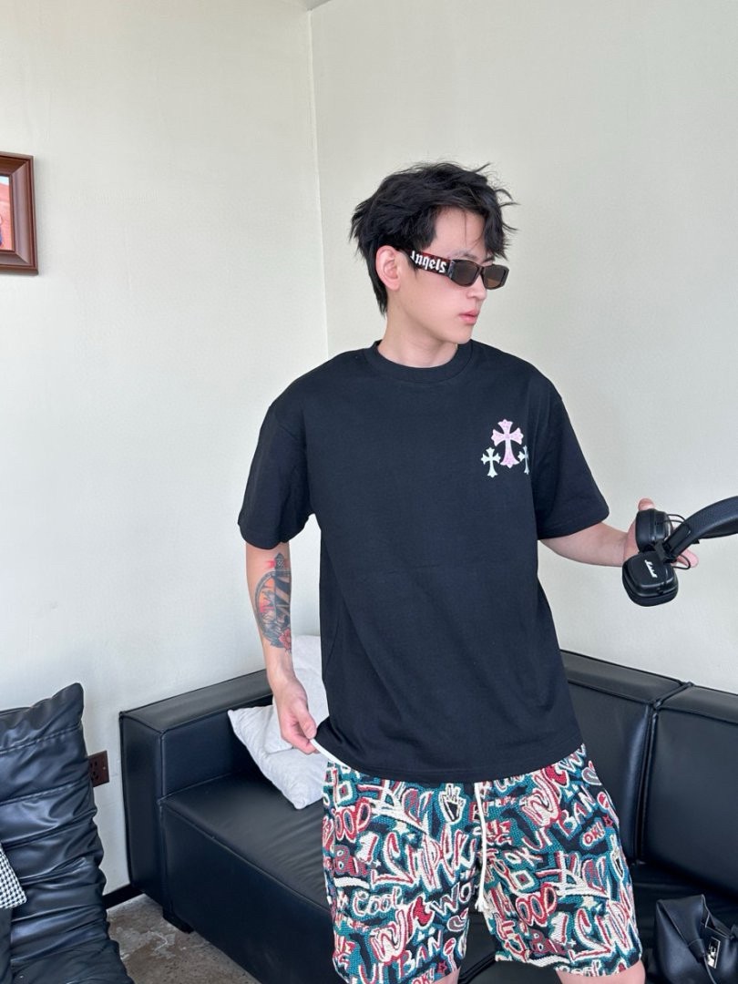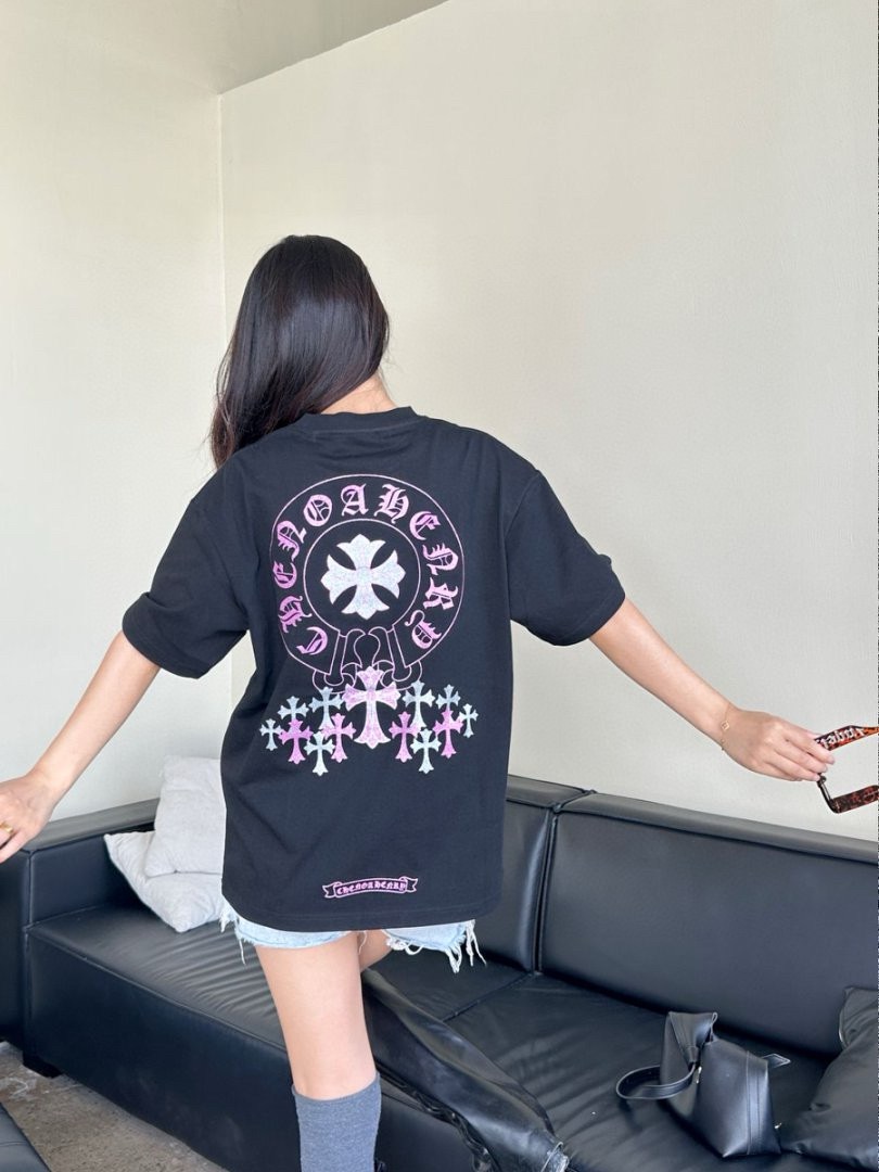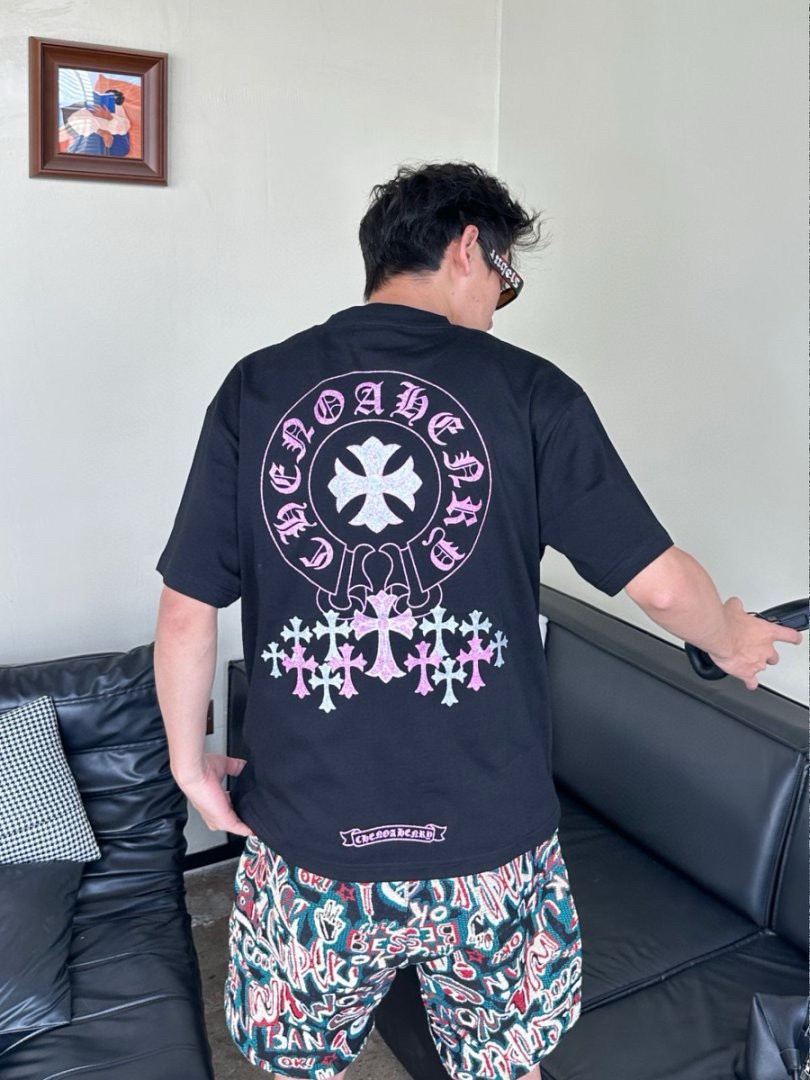 #Chrome Hearts/ Chrome Hearts 25ss Glitter logo print short-sleeved top wearing effect