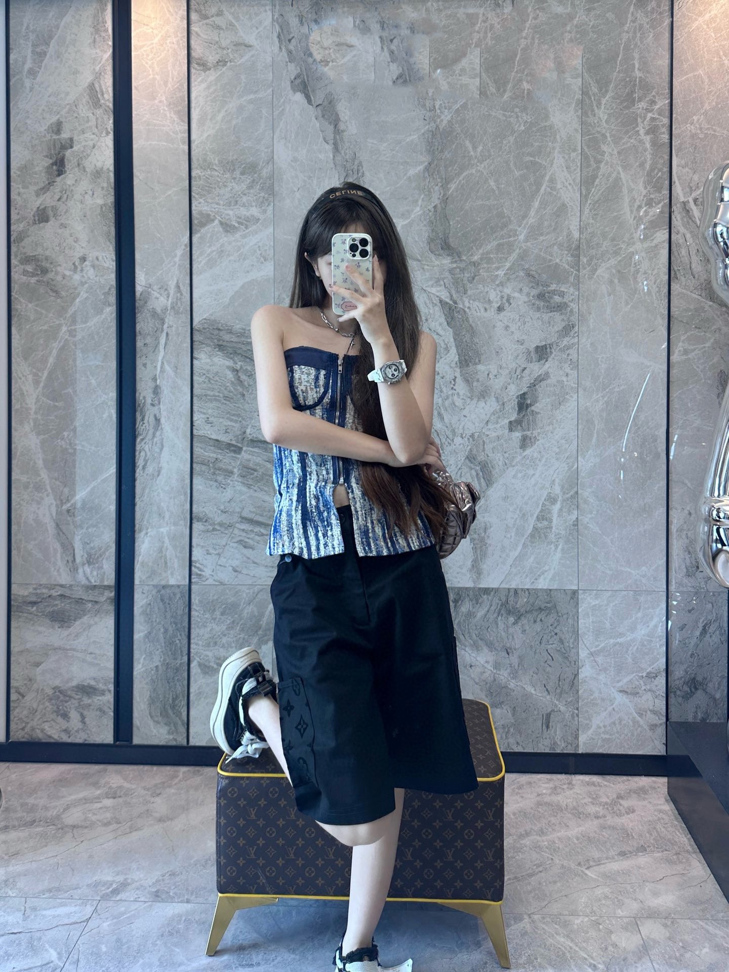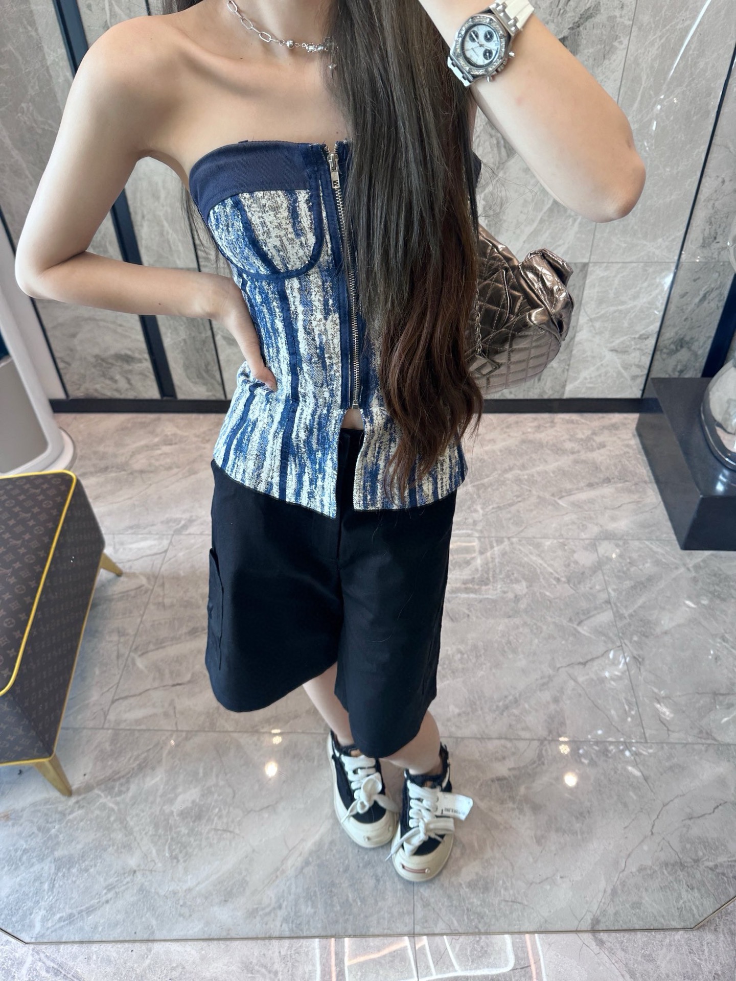 The wearing effect of the #Louis Vuitton 24ss pocket flocked patchwork shorts