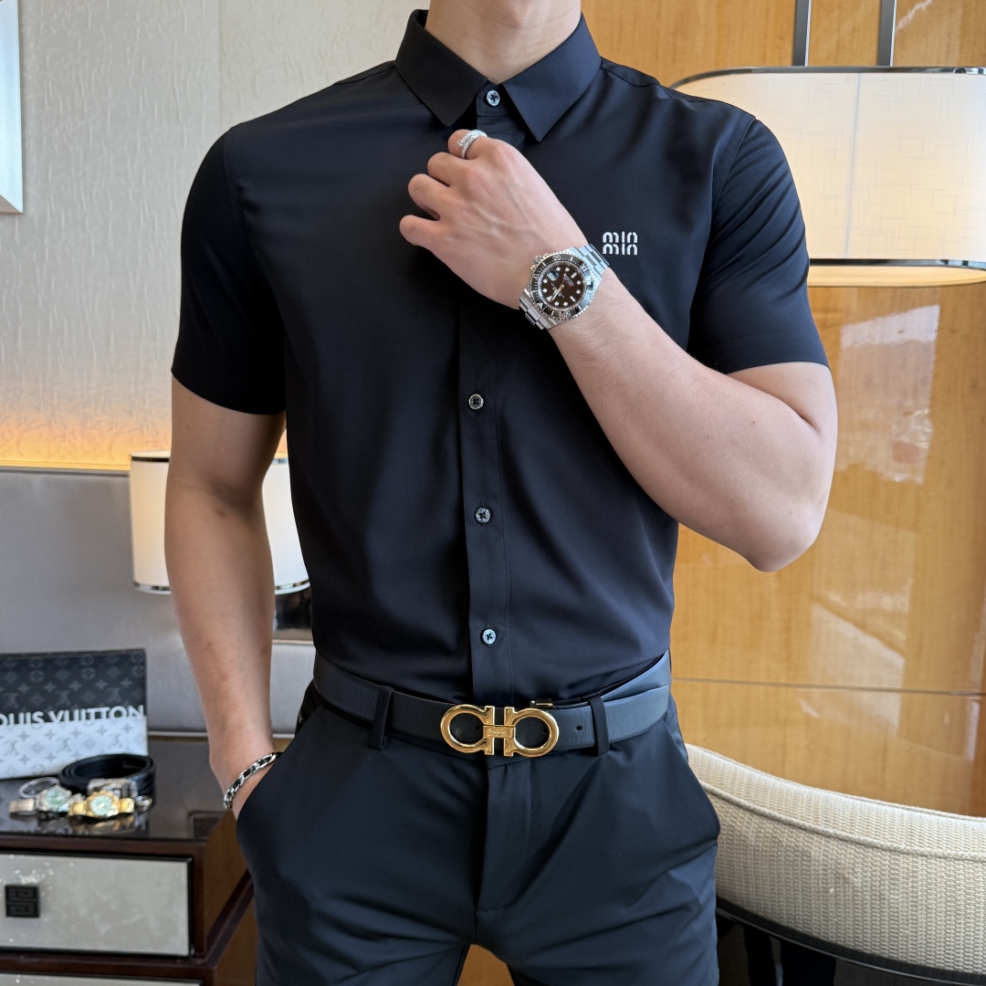 ???? miaomiao - 2025ss spring/summer fashion bestseller short-sleeved shirt, a trade company channel product, with such perfect condition, belongs to the cabinet level, a predictable bestseller, made of high-end custom imported long-staple cotton fabric, master-level cutting, unrivaled texture, excellent skin-friendliness, very outstanding aesthetic design, exquisite craftsmanship, smooth lines, perfect matching! Easily elevate the sense of fashion, with high recognition. The wearing effect is excellent. The workmanship is extremely meticulous and rigorous, with neat and detailed stitching. It can be matched for both business and daily casual wear! Counter size M-3XL (models weighing 178/145 pounds wear size L)