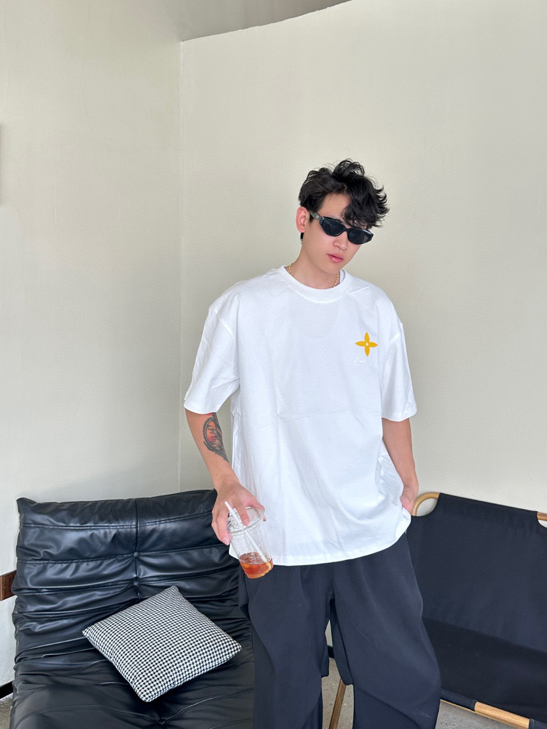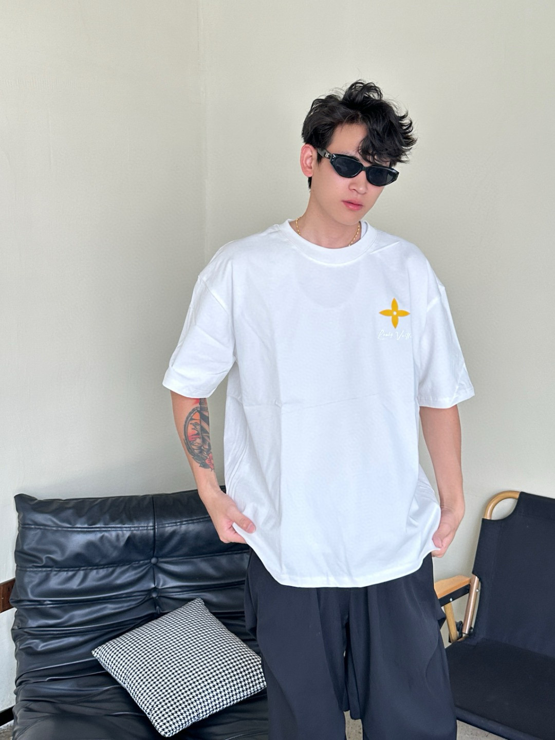 #Louis Vuitton/ Louis Vuitton 25ss yellow Cross flower short-sleeved top wearing effect