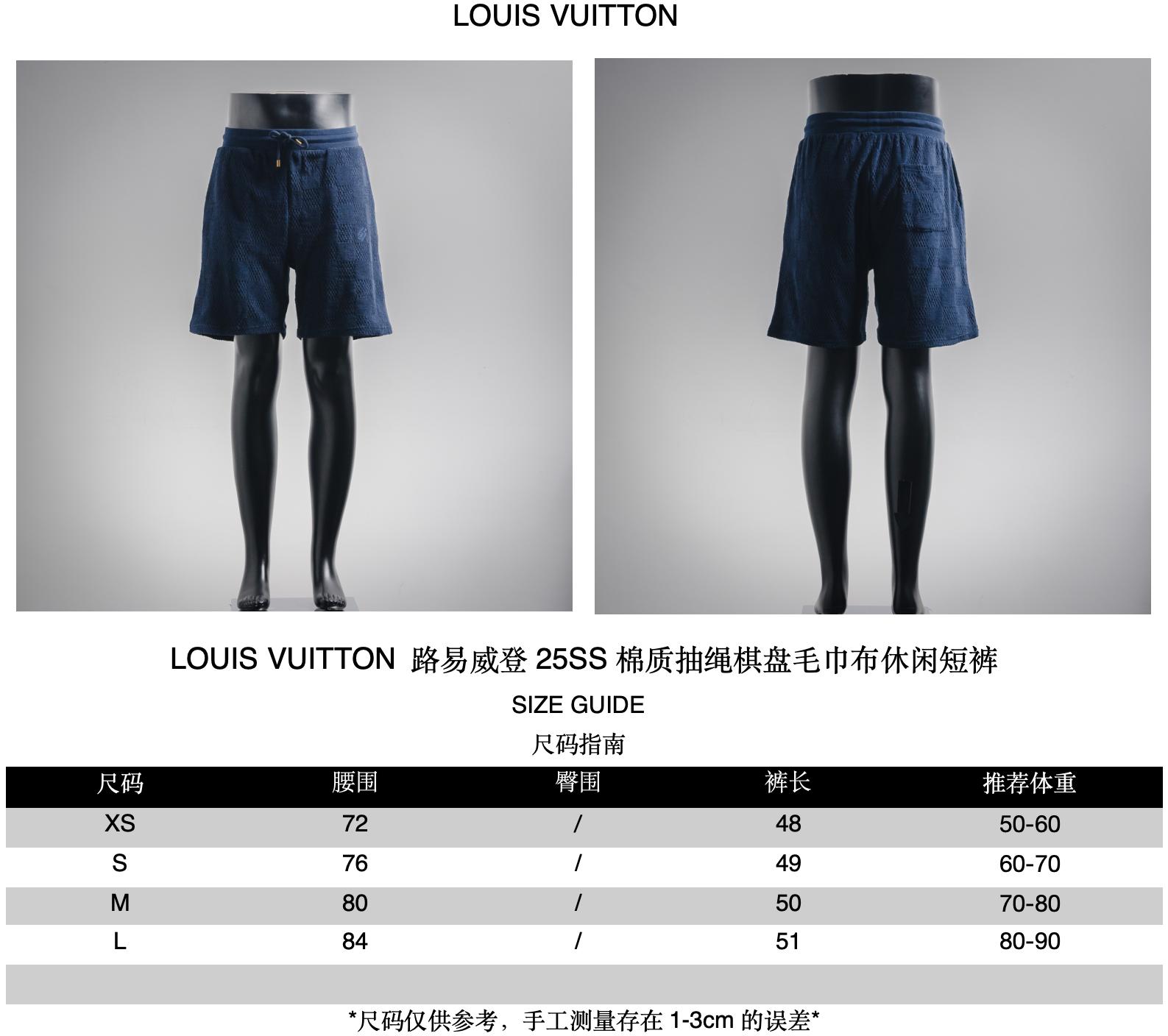 LOUIS VUITTON 25SS cotton drawstring chessboard towel fabric casual shorts size recommendation