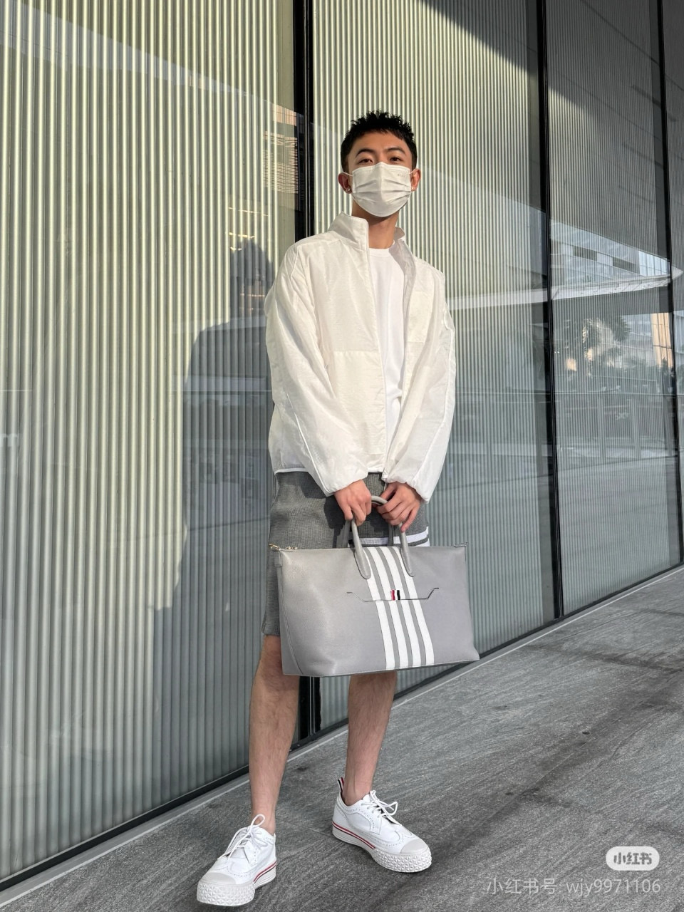 #Thom Browne/ Tom Brown 25ss Line stand-up collar four-bar sun protection jacket Wearing effect