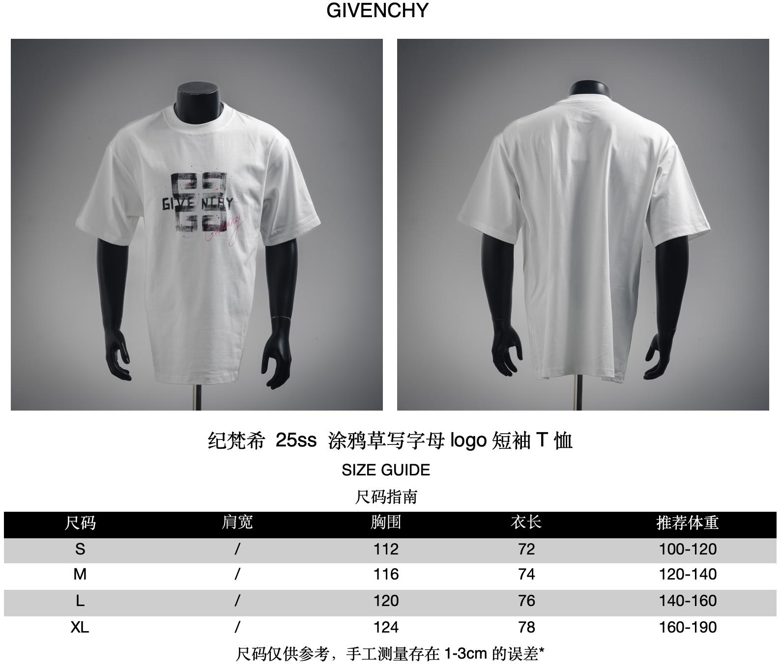 GIVENCHY/ Givenchy 25ss Graffiti Cursive letter logo short-sleeved T-shirt size recommendation