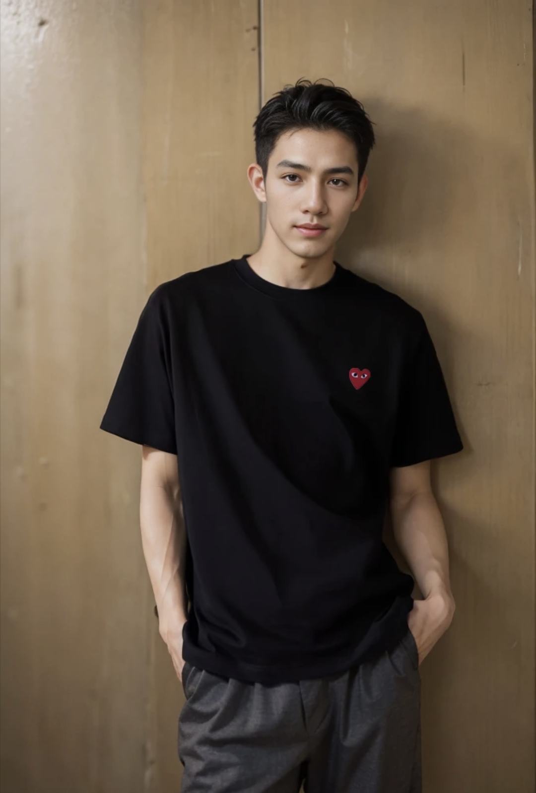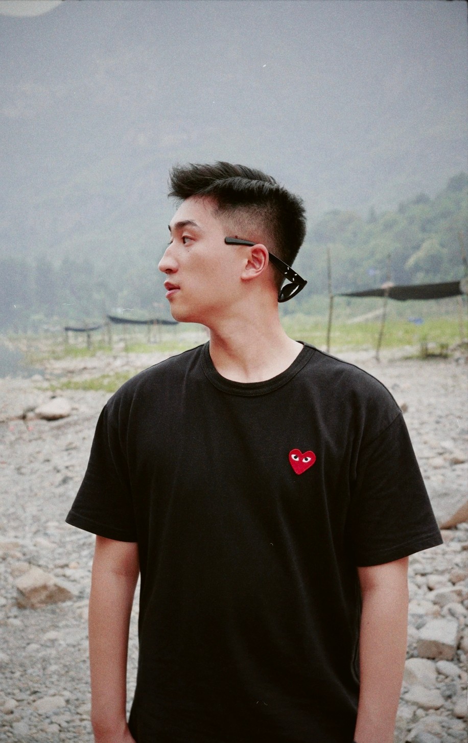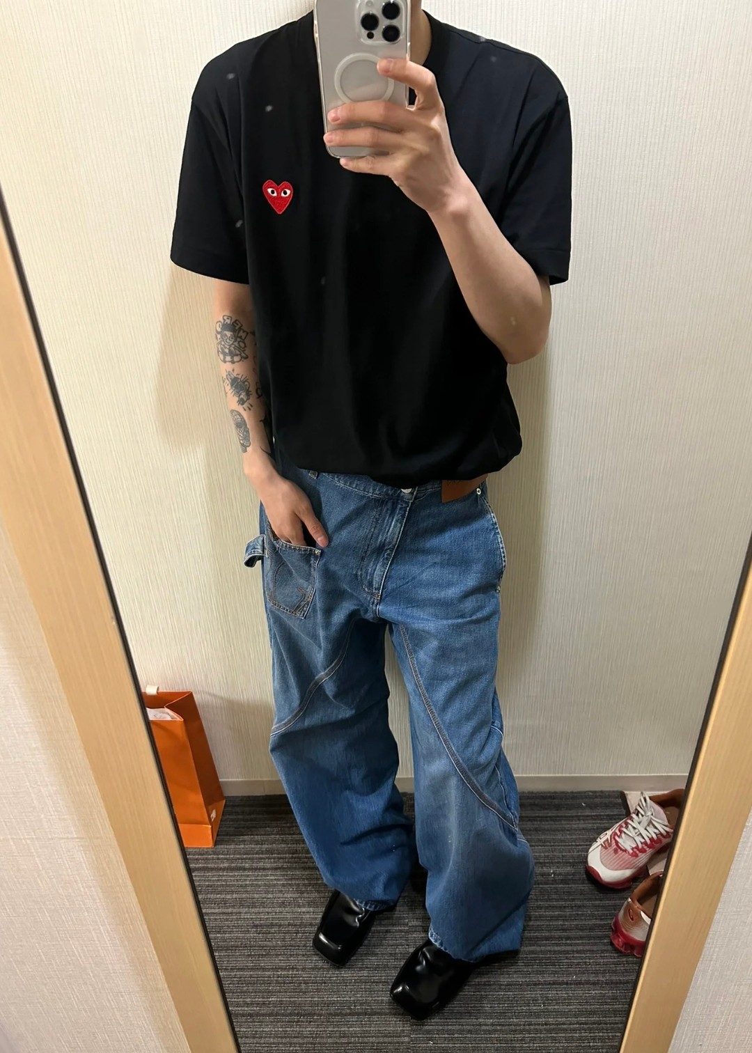 PLAY CDG Rei Kawakubo Classic Evergreen Little Red heart-shaped Embroidered Couple's pure white short-sleeved T-shirt Black upper body assembly