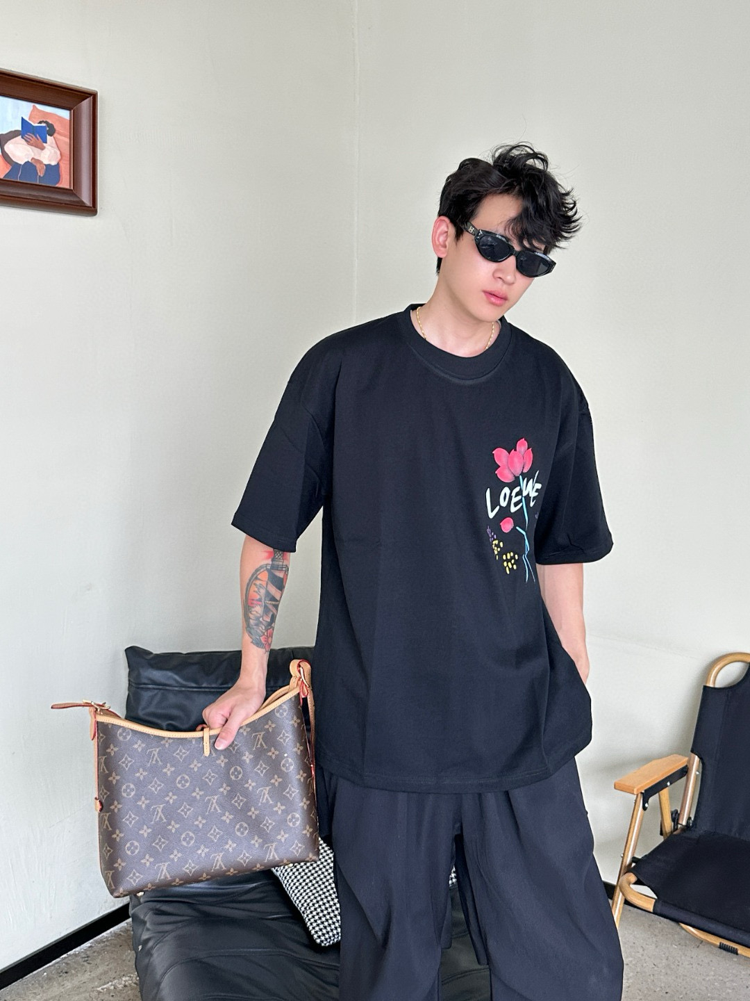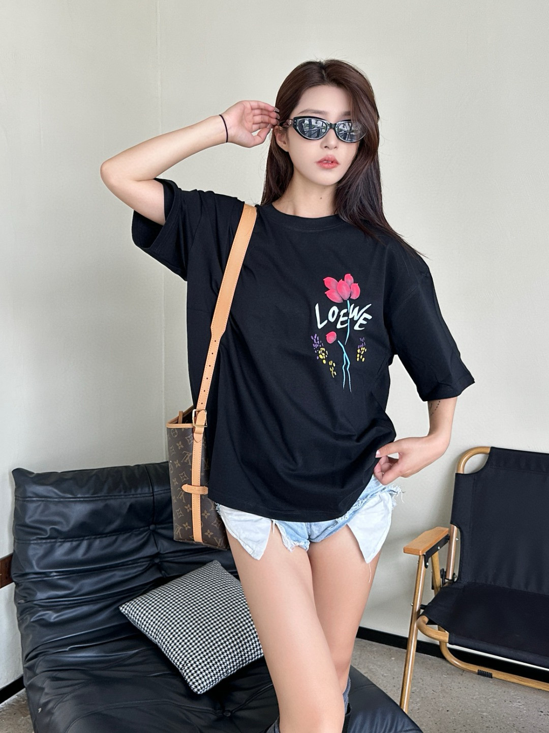 #Loewe/ LoeWE 25ss floral print short-sleeved top wearing effect