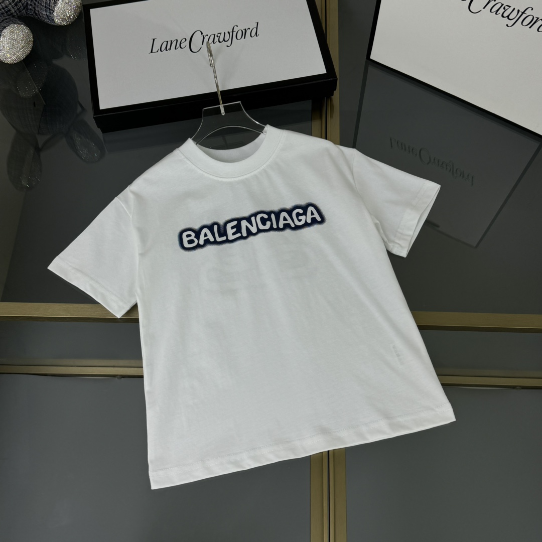 Balenciaga, high-end children's wear, private T-shirt, letter 3 d offset printing ? back large graffiti design, pure cotton fabrics, upper body comfortable, good-looking, code number: 100/110/120/130/140/150 cm
