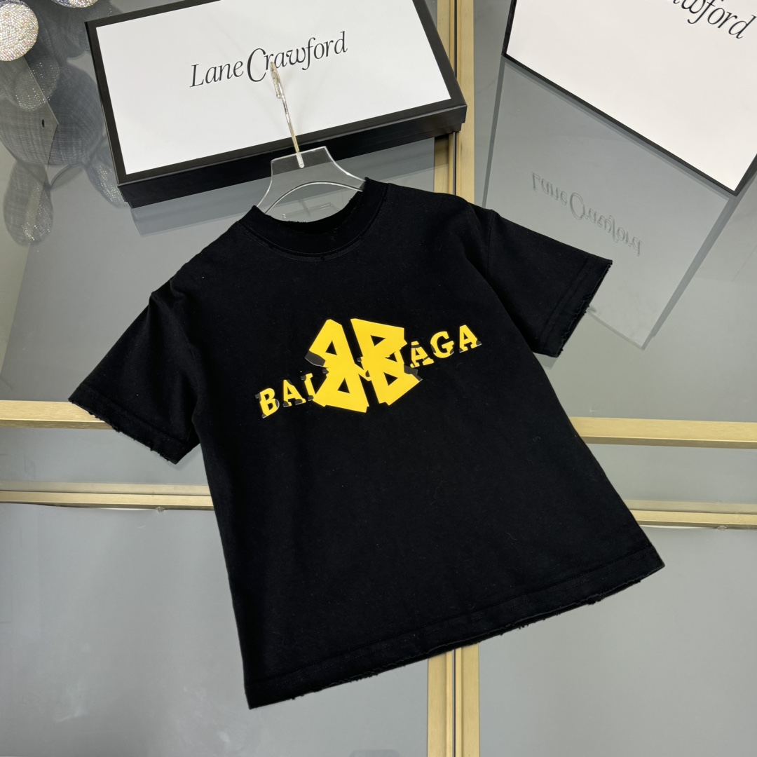 Balenciaga, high-end children's wear, private T-shirt, letter 3 d offset printing ? back large graffiti design, pure cotton fabrics, upper body comfortable, good-looking, code number: 100/110/120/130/140/150 cm
