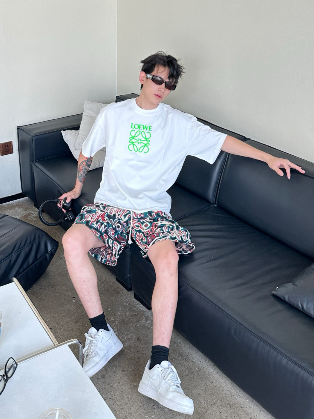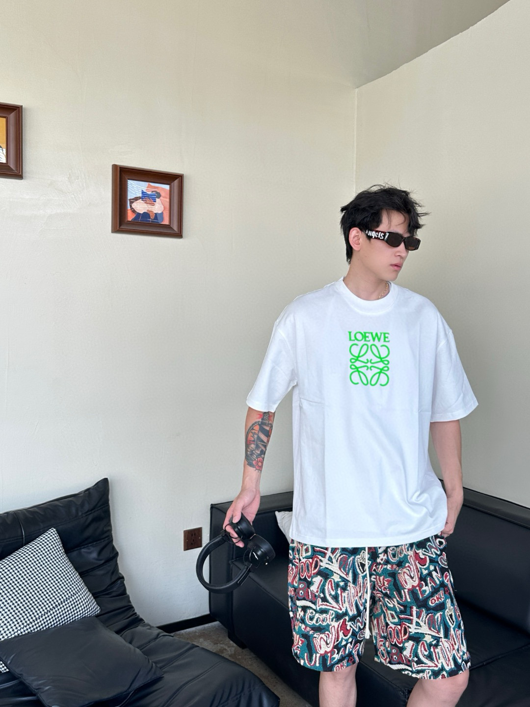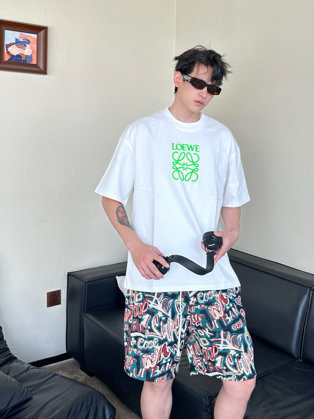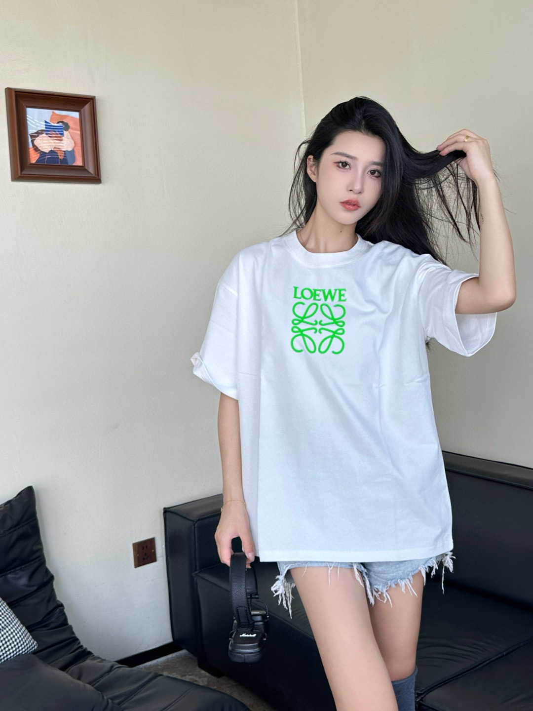 #Loewe/ LOeWE 25ss fluorescent green embossed logo short-sleeved wearing effect
