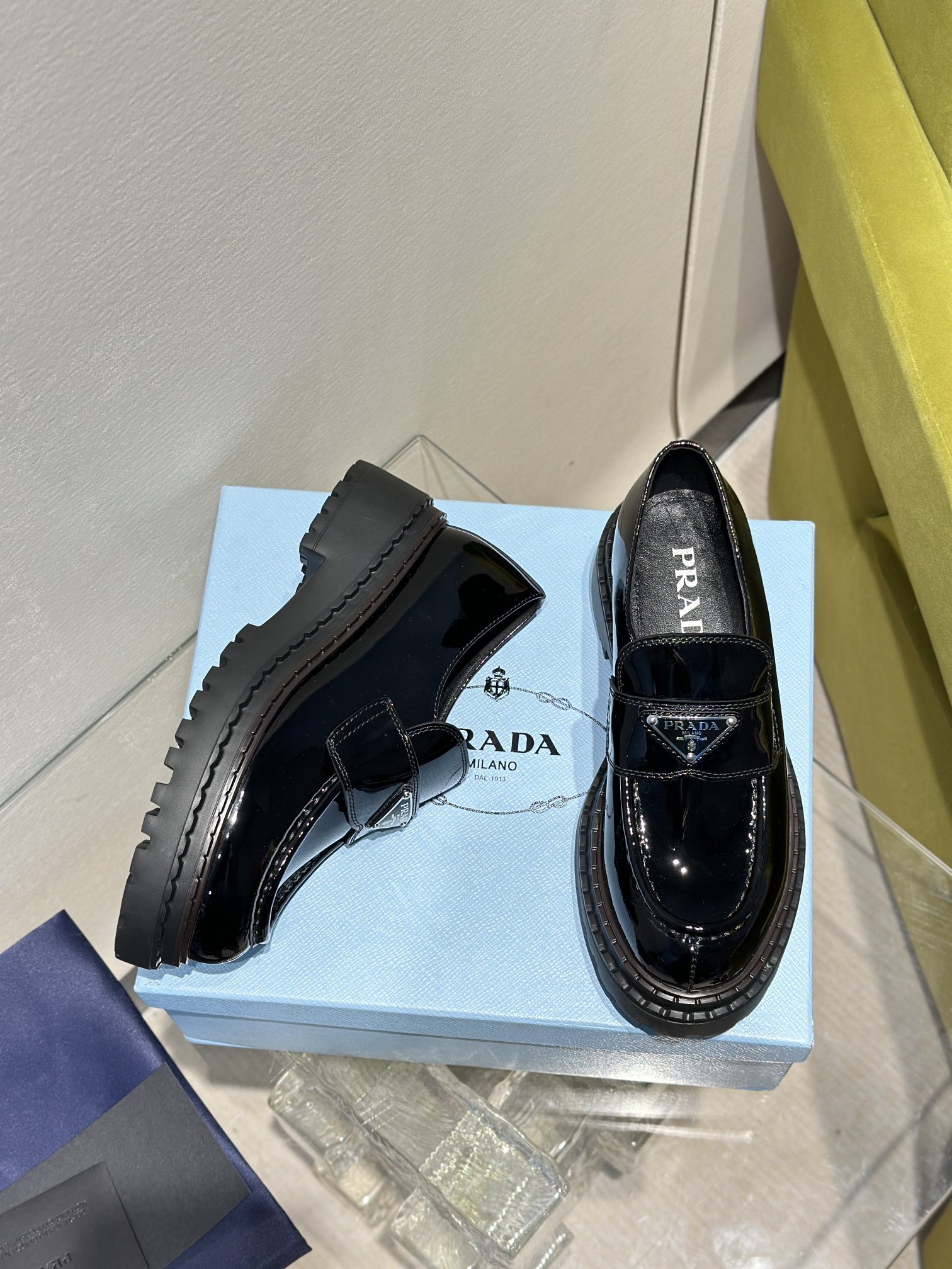 ???? New PRADA PRADA, beaded/patent/oiled leather, sheepskin lining, original TPU outsole, 35-39 size (40,41 size custom, non-returnable and non-exchangeable)