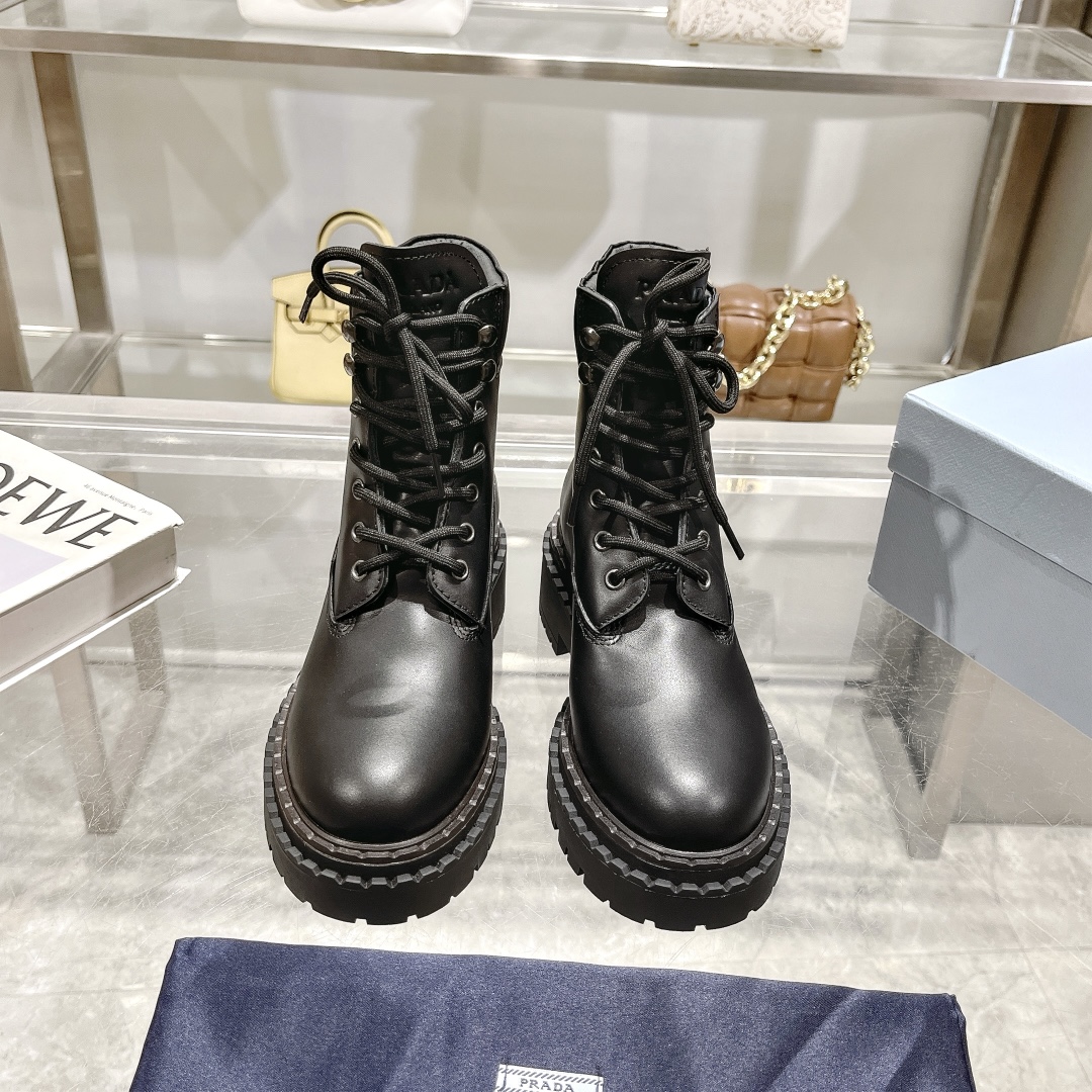 ???? Prada 24ss thick sole motorcycle boots Stylish thick-soled casual motorcycle Martin boots, unique FLAVOR, EVERYONE LOVE and EASY RIDE ? ? will explode every year. And the classic last that can conquer you, put it on, height-increasing and casual without any mistakes, simple and stylish on ?? Imported waxed calfskin ? Inside PAD FOOT dyed sheepskin ?? soft and fine, comfortable to walk on TPU rubber mold anti-slip, lightweight and large soles Original packaging ?? Standard code size :35-40